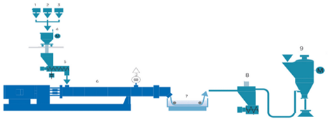 我们一般称由以上各部分组成的挤出装置为挤出机组。