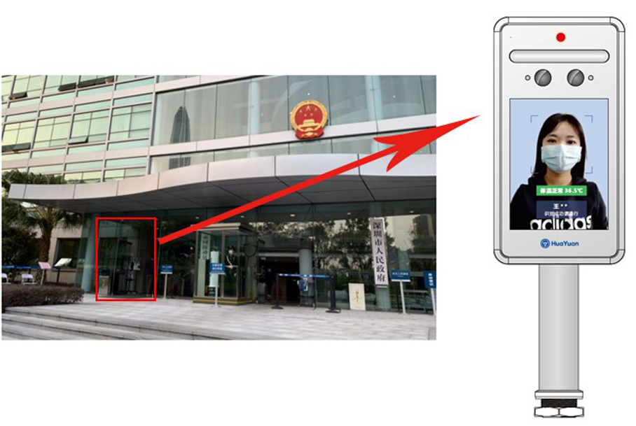 2月11日,华远云智能公司完成首台测温设备样机的试制,并通过合作渠道集成商在当时需求迫切的深圳天健商务大厦安装,恰逢当日深圳市政府相关领导到天健大厦视察疫情防控落实情况,对这一新型设备颇感兴趣,经现场多次测温验证,1秒内响应,精确度达±0.3度,既避免了手持额温枪近距离测温的风险,同时大幅度提升了测温效率,得到了深圳市政府相关领导及天健集团领导的充分肯定,首台样机顺利成功应用。