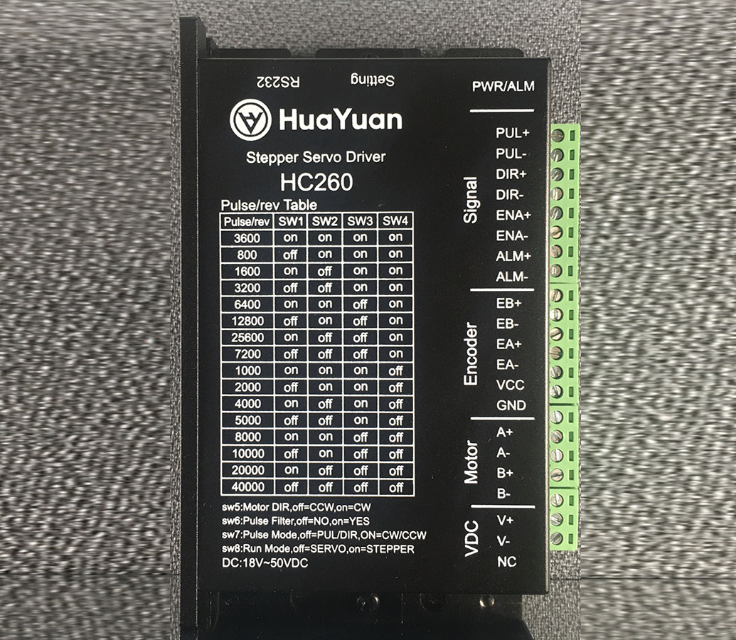 HC260 闭环步进驱动器HC系列混合伺服,包括HC系列驱动器、HCM系列电机,是我司基于自动化行业的安全稳定可靠、精准高效智能、高性价比、体积紧凑等多方面市场需求,兼顾步进和伺服的特点,针对性推出的单相混合伺服系统,完美驱动从42mm到86mm机座的全系列的两相高品质混合伺服电机。 HC系列混合伺服,具有高可靠、大力矩、高精度、高稳定平稳、高性价比等特点,广泛应用于电子、五金、木工、雕刻、玻璃、激光、喷绘、包装、纺织服装等自动化设备和生产线。
