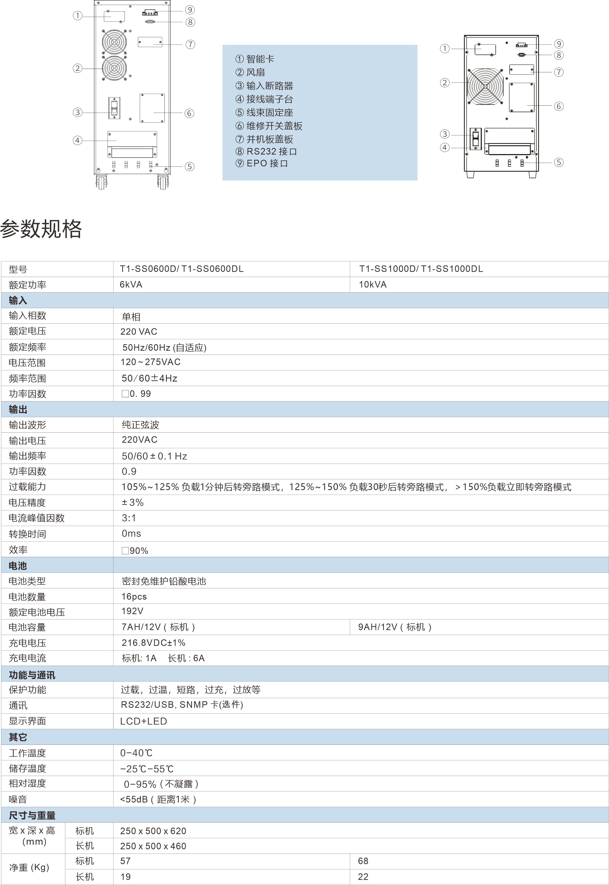 T1 系列在线式高频UPS 6kVA-10kVAT1 系列在线高频智能化 UPS,采用双变换设计、DSP 数字控制,集成输入功率因数校正技术,保证更加优良的输出性能,满足设备需求,LCD+LED 可视化界面方便快捷掌控UPS 和设备工作信息。
