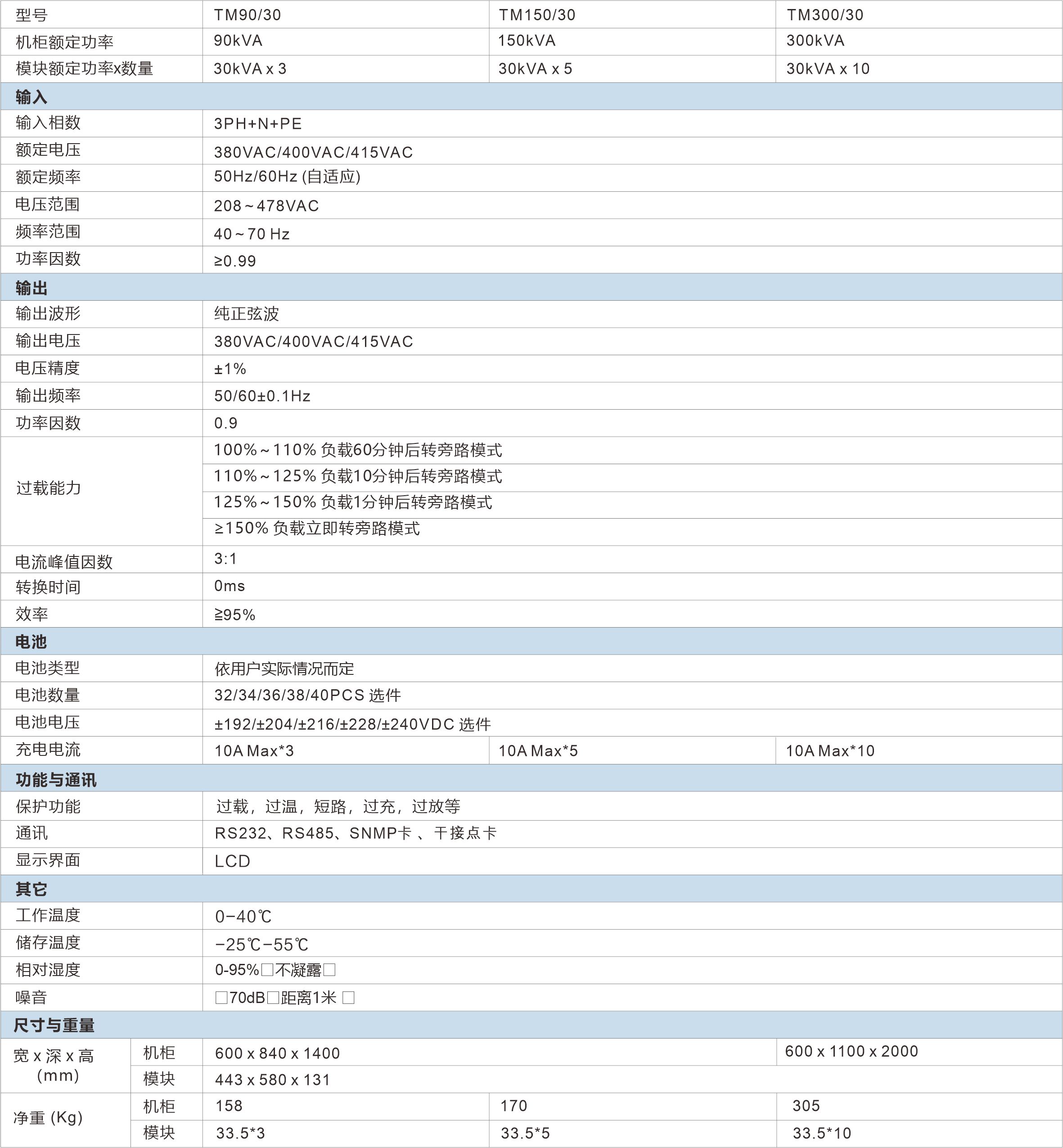 TM 系列在线式模块化UPS 90kVA-300kVA(3/3)TM 系列采用模块化设计与 N+X 并联冗余技术,产品容量覆盖 30kVA 到 300kVA 之间,方便用户灵活配置与逐步投资。该系列 UPS 可以解决各种的电源问题,如断电、市电高压、市电低压、电压瞬间跌落、减幅振荡、高压脉冲、电压波动、浪涌电压、谐波失真、杂波干扰、频率波动等电源问题。