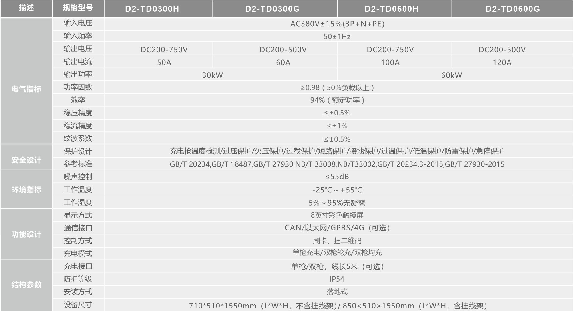 一体式直流电桩适用于城市专用充电站(公交车、出租车、环卫车、物流车、分时租赁电动车等)、城市公共充电站(面向社会车辆)、城际高速公路充电站等需要直流快速充电的场合。 产品集功率变换、充电控制、计量计费等于一体,功率配置灵活,安装方便,性能稳定。产品系列涵盖单枪输出、双枪轮充和均充、功率分配输出等多种模式,是快速充电的理想设备。