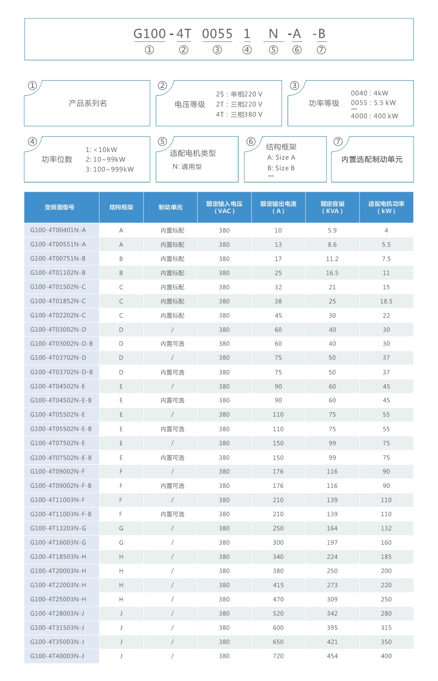 G100系列通用开环矢量变频器G100系列通用开环矢量变频器为华远电气开发的新一代通用型产品,造型采用直线条黄金分割,外观硬朗、科技感十足。全系列功率段涵盖4kW -800kW ,支持VF控制、开环矢量控制,主要面向国内市场的离心机、挤出机、工业洗衣机、拉丝机等设备的配套和纺织、注塑、化纤、水泥、陶瓷等生产线的改造需求,以及石化、炼油、热电、供水、供热等行业的风机、泵类设备的大型项目需求。